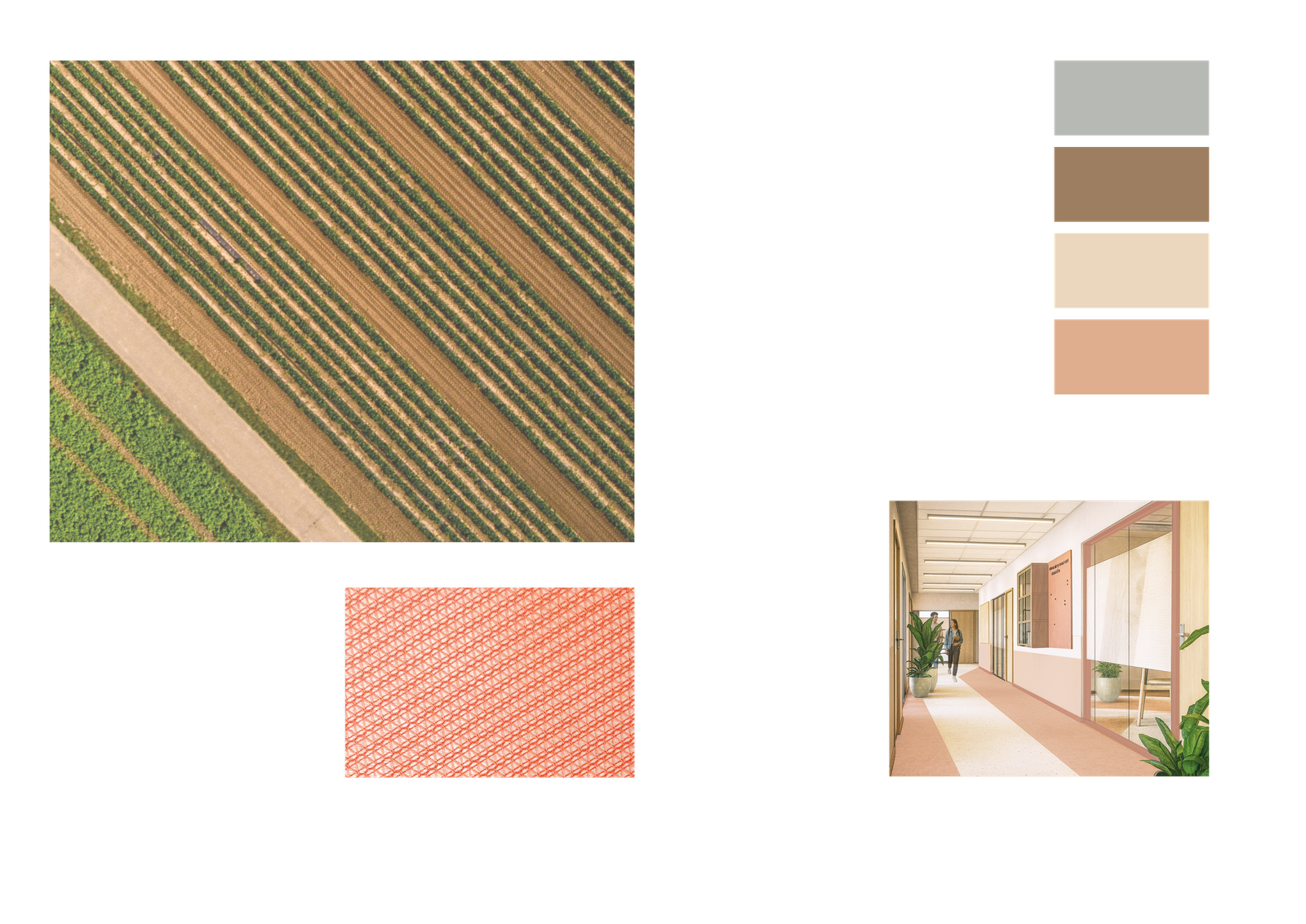 mboRijnland biedt studenten richting en ruimte om hun eigen toekomst vorm te geven. Het interieurconcept sluit hierop aan met heldere routing en een subtiel lijnenspel als fundament van het ontwerp. Aangevuld met kleurzones die geïnspireerd zijn op het Rijnlandse landschap, wordt er op deze manier oriëntatie en variatie gecreëerd. Zo versterken we de identiteit van de school en nodigen we studenten uit om hun eigen pad te verkennen.