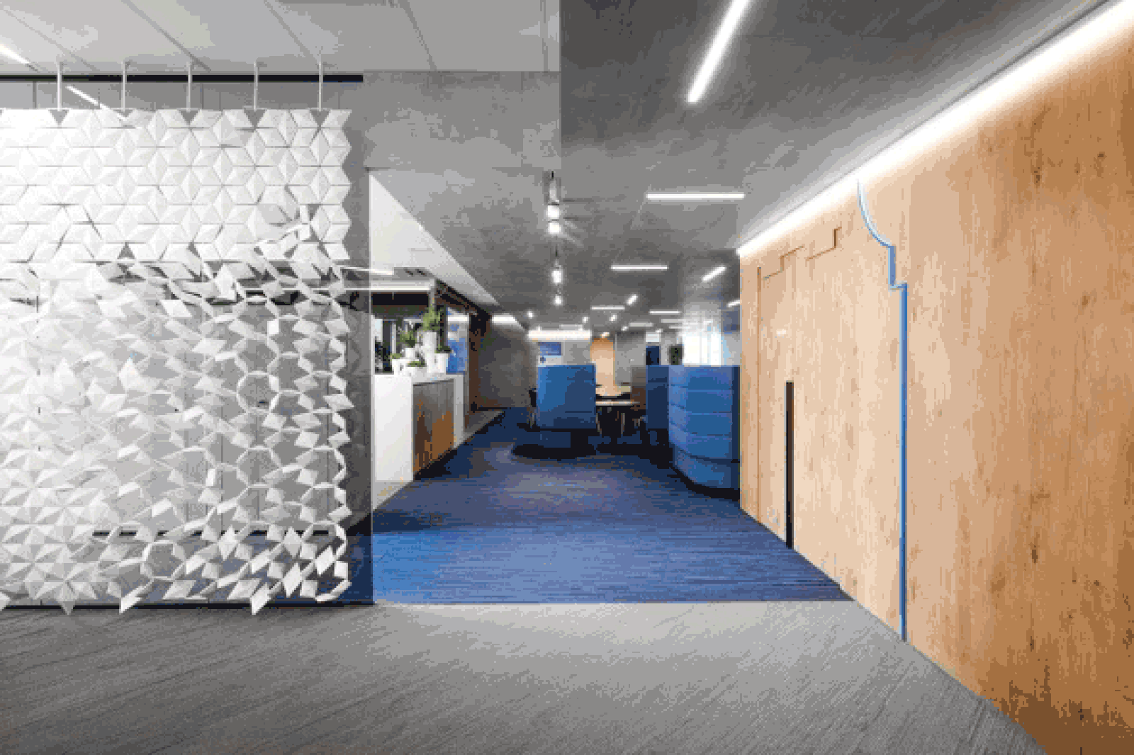 Het concept zorgt voor samenwerking, maar biedt ook privacy waar dat nodig is. Het open kantoor is opgezet als een netwerk van straten en steegjes, waardoor publieke en private ruimten vloeiend in elkaar overlopen. Spelen met open en gesloten heeft een belangrijke rol in het ontwerp. De speciaal voor Redevco ontworpen geluidsdichte taatsdeuren, creëren nieuwe hoekjes als ze geopend worden. De facetwanden van Bloomming kunnen door de medewerkers worden aangepast van semi-transparant naar volledig ondoorzichtig. Zo is de ruimte op verschillende plekken gemakkelijk aanpasbaar aan de behoeften van het moment.